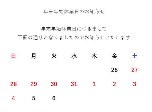 ~年末年始休業日のお知らせ~